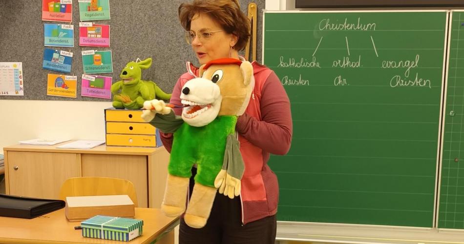Das Zahngesundheitsteam von Avomed besuchte wieder unsere Schule. Die Kinder übten wieder gemeinsam mit "Bürstl" und Inge das richtige Zähne putzen. Nach dem Putzen bekamen die Kinder ein richtig nasses "Busserl" vom Bürstl. Zum Abschluss wurde noch eine Runde Bingo zum Thema "Gesunde Jause" gespielt.
