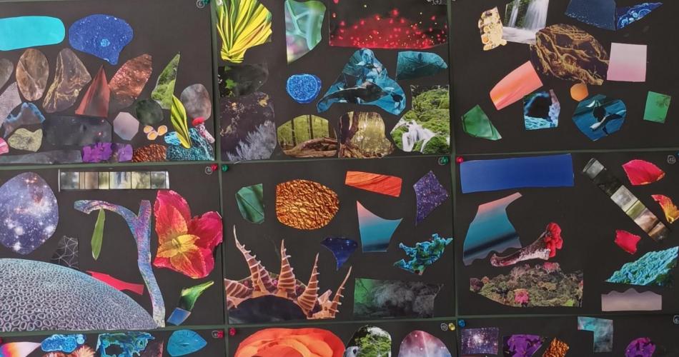 Bei der 1. Station wurden die selbstgemachten Collagen der Kinder vom letzten Mal nochmal gemeinsam besprochen und in verschiedene Themenbereiche geordnet.