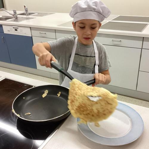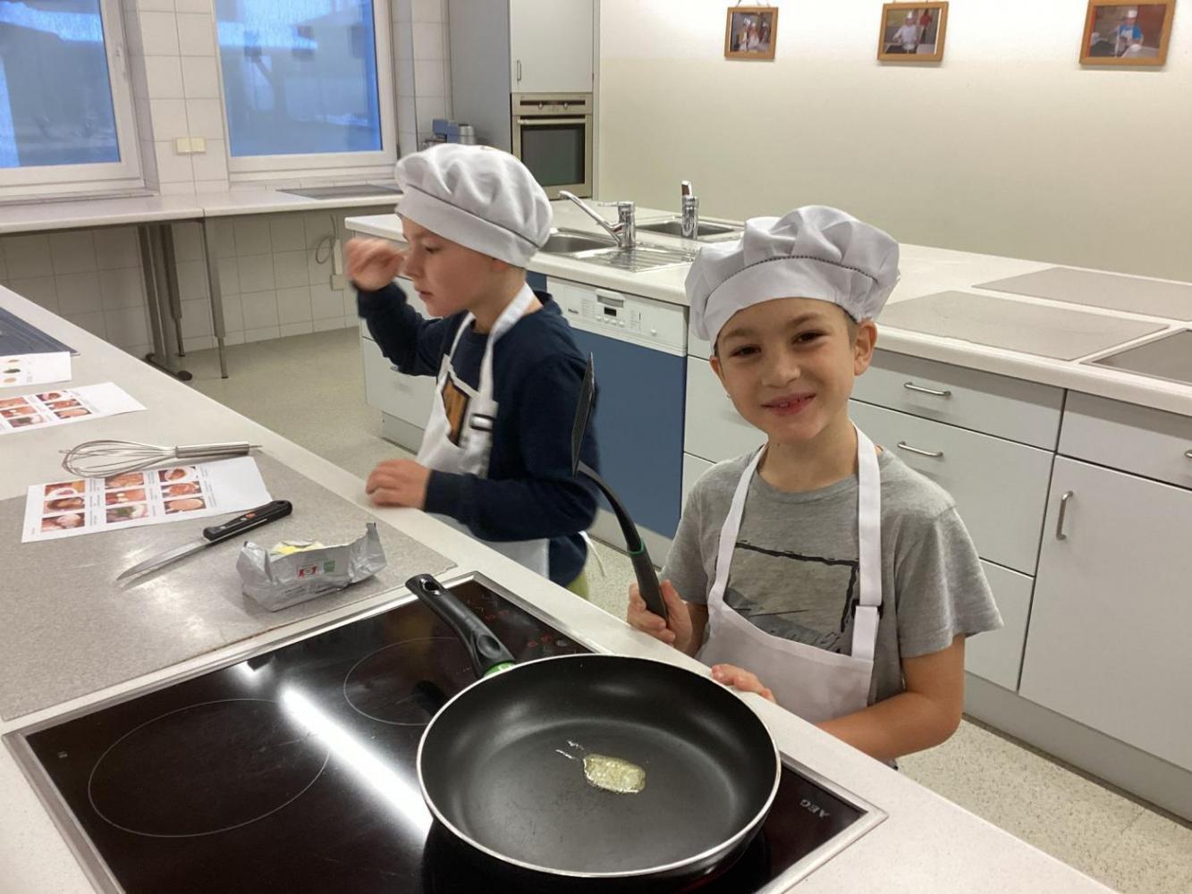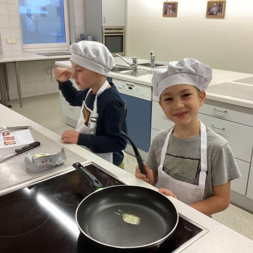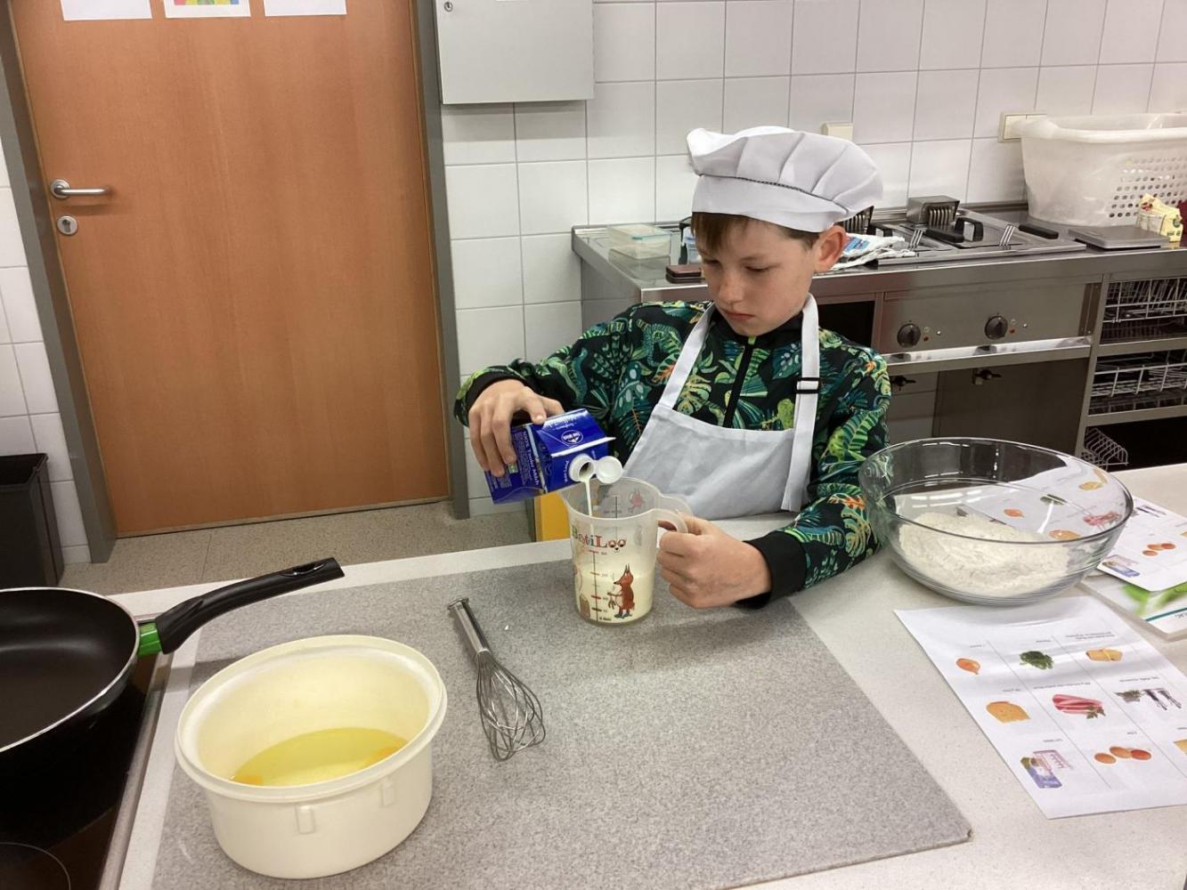 Pfannkuchen von Carmen Mariacher 07. Januar 2026 3b Die Kinder der 3b Klasse bereiteten leckere Schinken-Eier-Pfannkuchen zu.