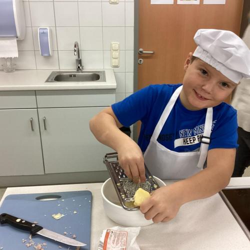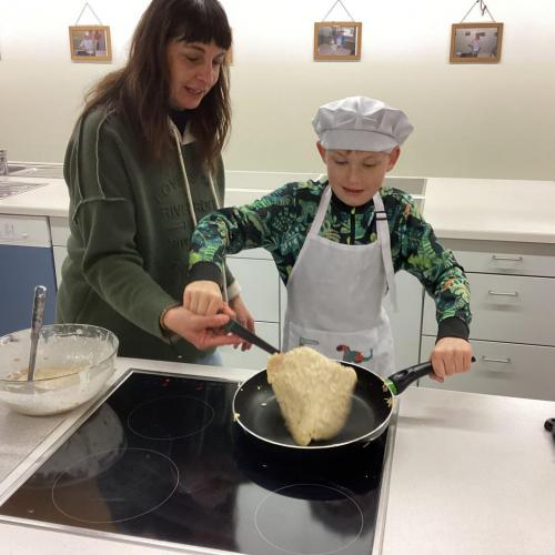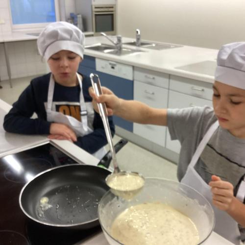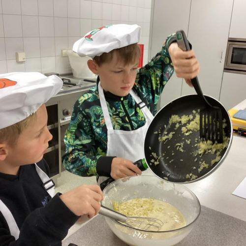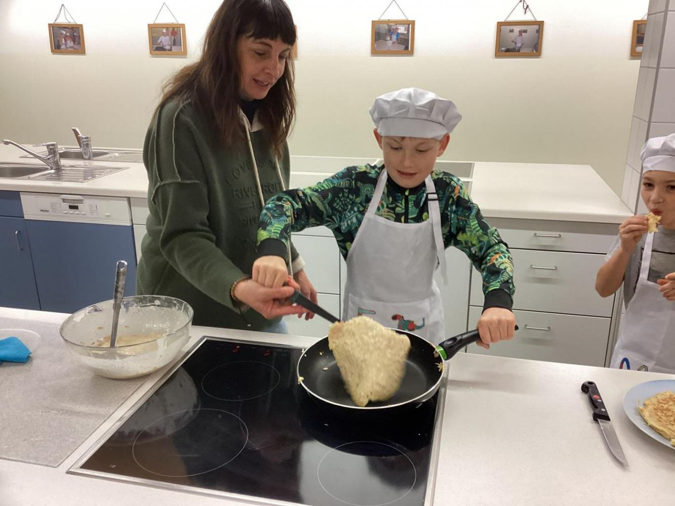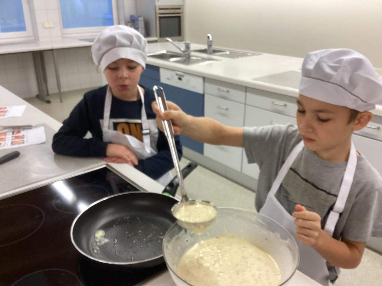 Pfannkuchen von Carmen Mariacher 07. Januar 2026 3b Die Kinder der 3b Klasse bereiteten leckere Schinken-Eier-Pfannkuchen zu.