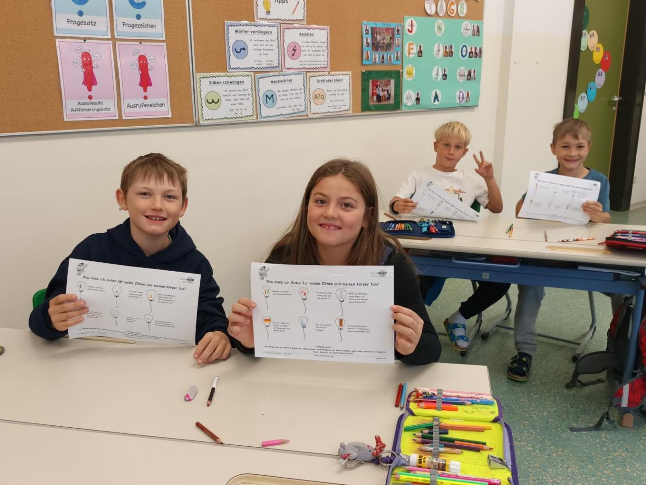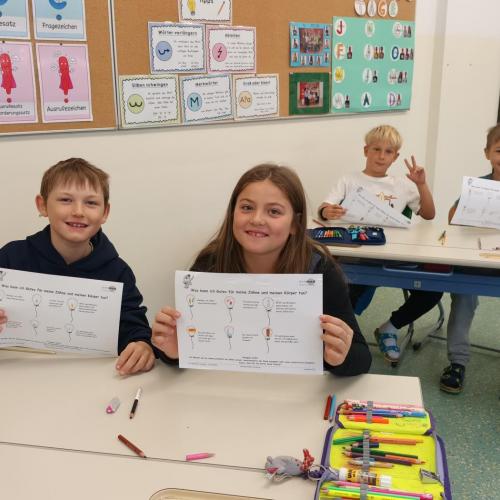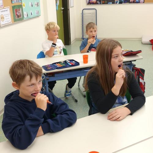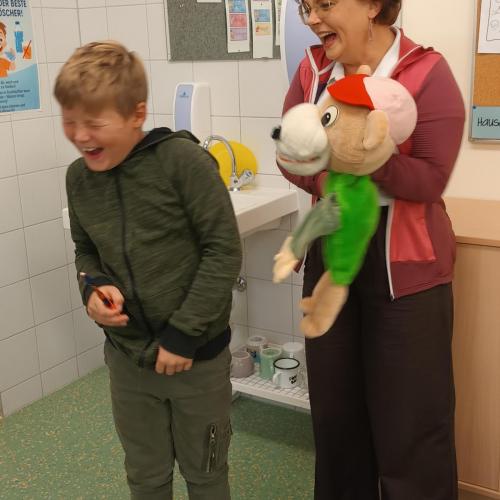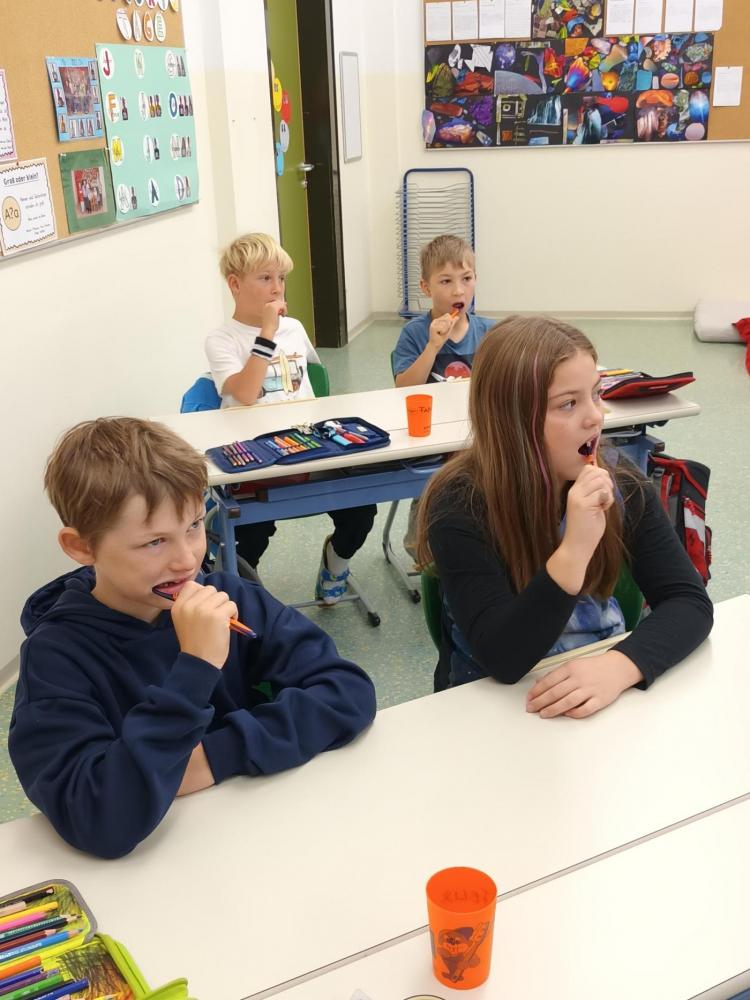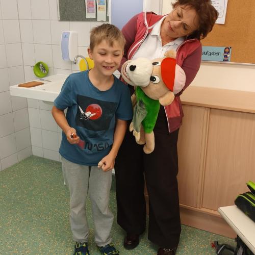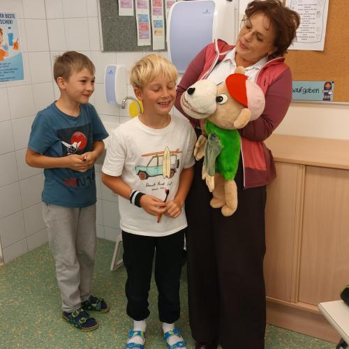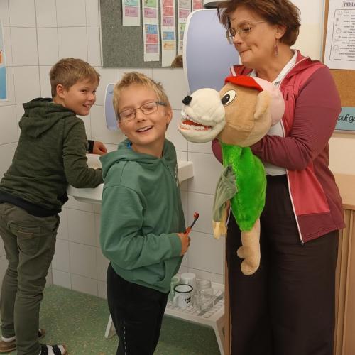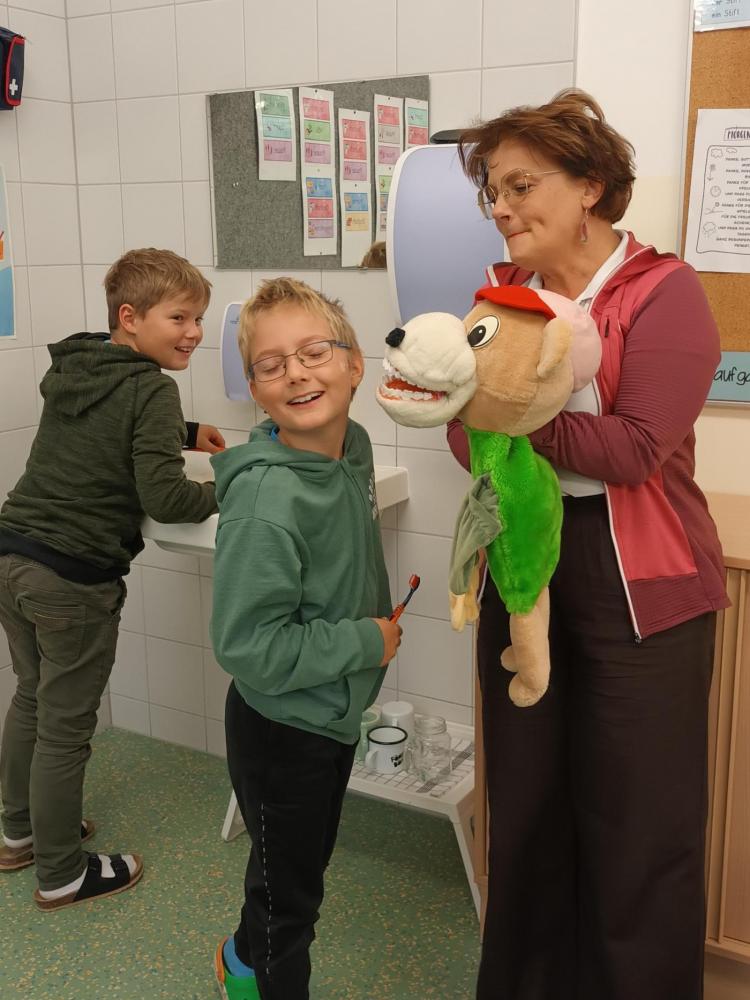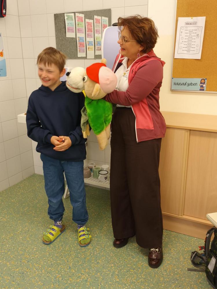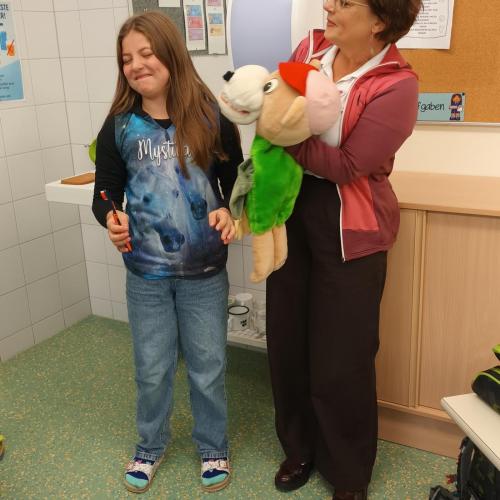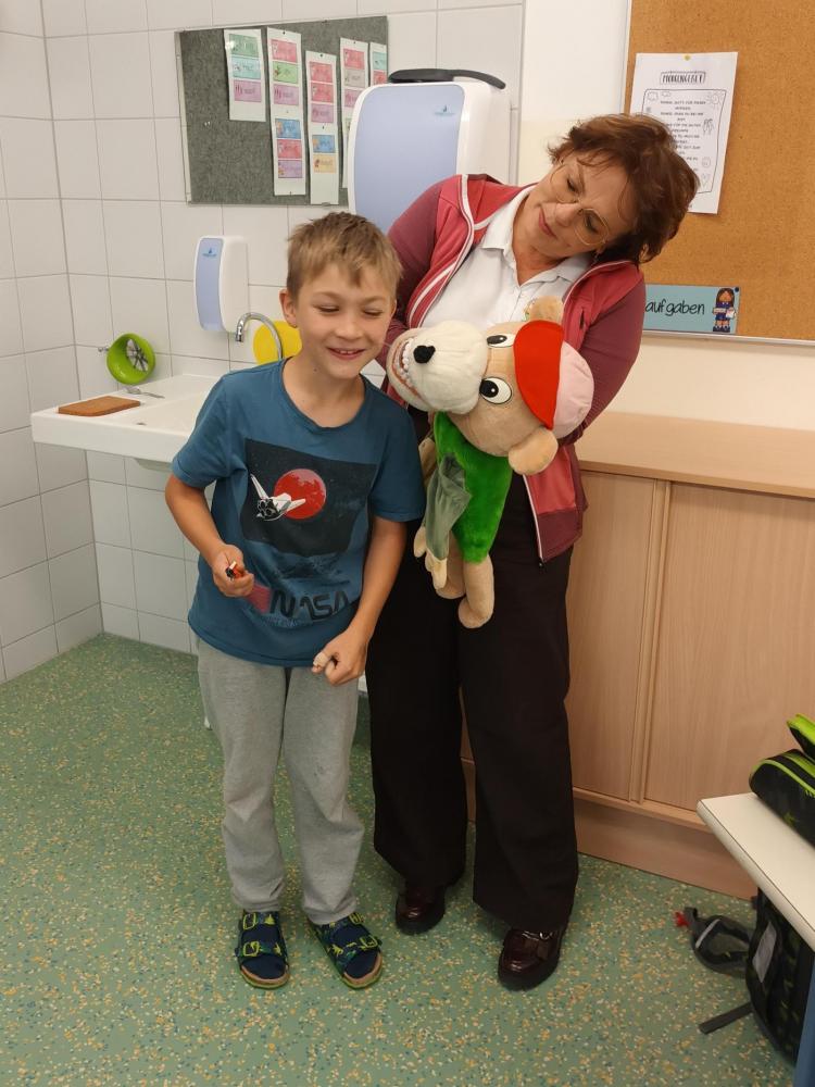 Das Zahngesundheitsteam von Avomed besuchte wieder unsere Schule. Die Kinder übten wieder gemeinsam mit "Bürstl" und Inge das richtige Zähne putzen. Nach dem Putzen bekamen die Kinder ein richtig nasses "Busserl" vom Bürstl. Zum Abschluss wurde noch eine Runde Bingo zum Thema "Gesunde Jause" gespielt.